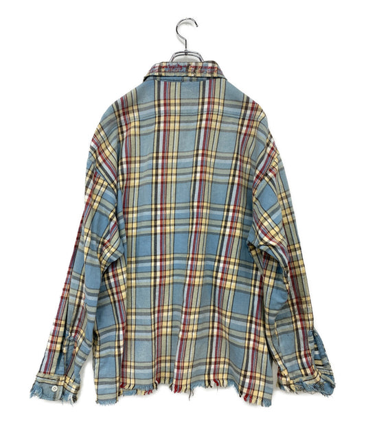 SAINT MICHAEL 長袖シャツ ストリート 24AW ダメージ ヴィンテージ加工 FRANNEL SHIRT BLUE+GRAY SM-YS1-0000-024 メンズ SIZE M セントマイケル