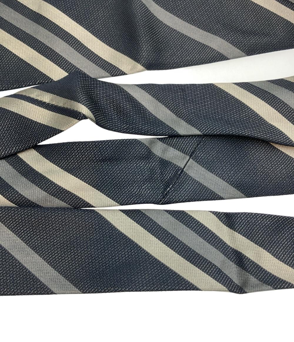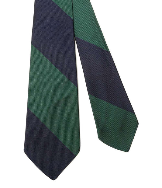 美品 POLO RALPH LAUREN ネクタイ ストライプド シルク ネイビー×グリーン メンズ ポロ・ラルフローレン
