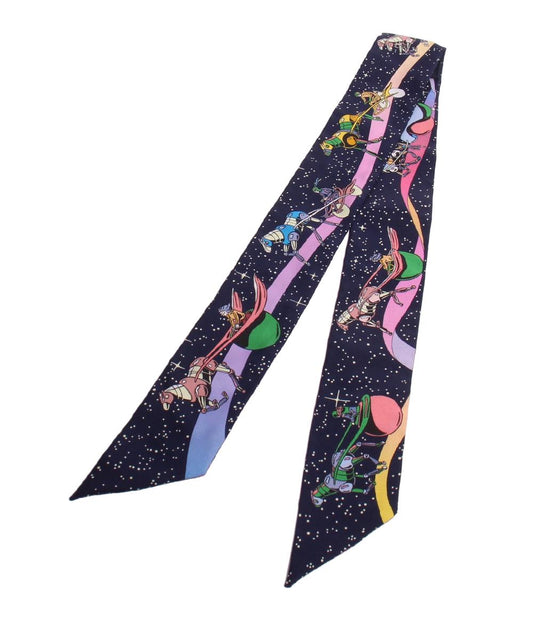 美品 HERMES ツイリー スカーフ シルク100% SPACE DERBY レディース メンズ エルメス